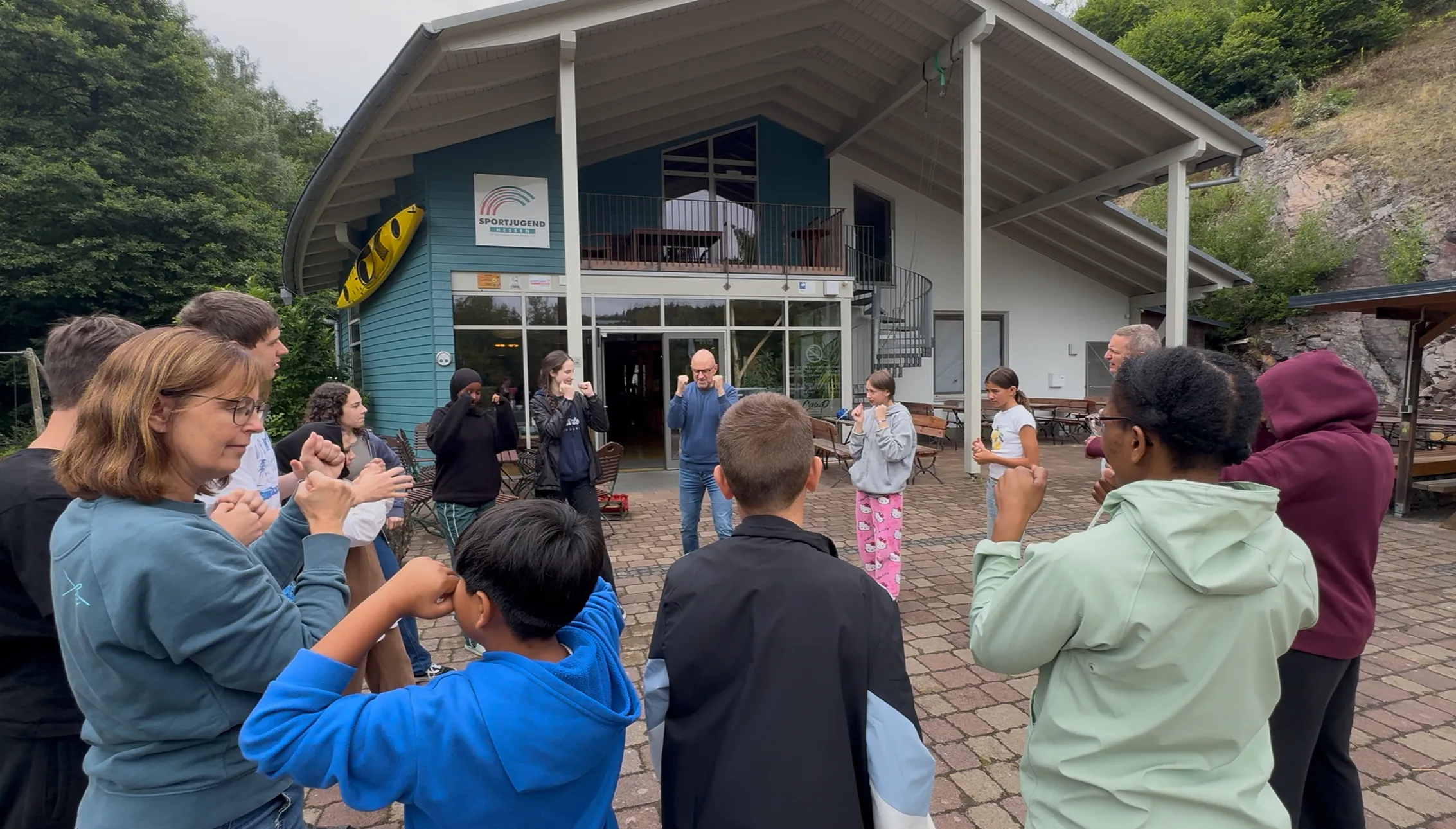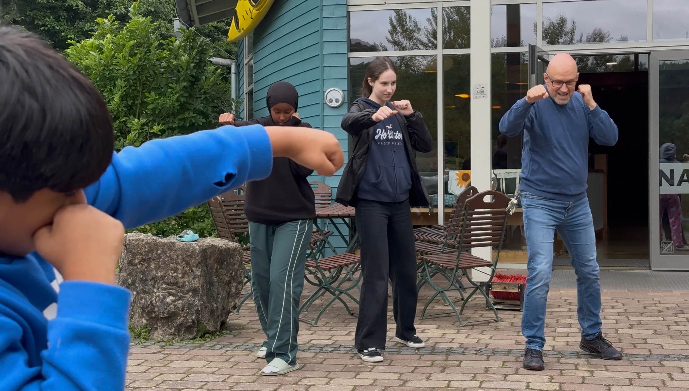 Peter Schreiber von der Sportjugend Hessen, selbst ausgebildeter Boxtrainer, erklärte uns, dass man im Boxverein nicht unbedingt kämpfen muss – das Training stärkt den ganzen Körper, fördert Körperspannung und Aufmerksamkeit. Genau das haben wir direkt ausprobiert und dabei richtig viel Spaß gehabt.
