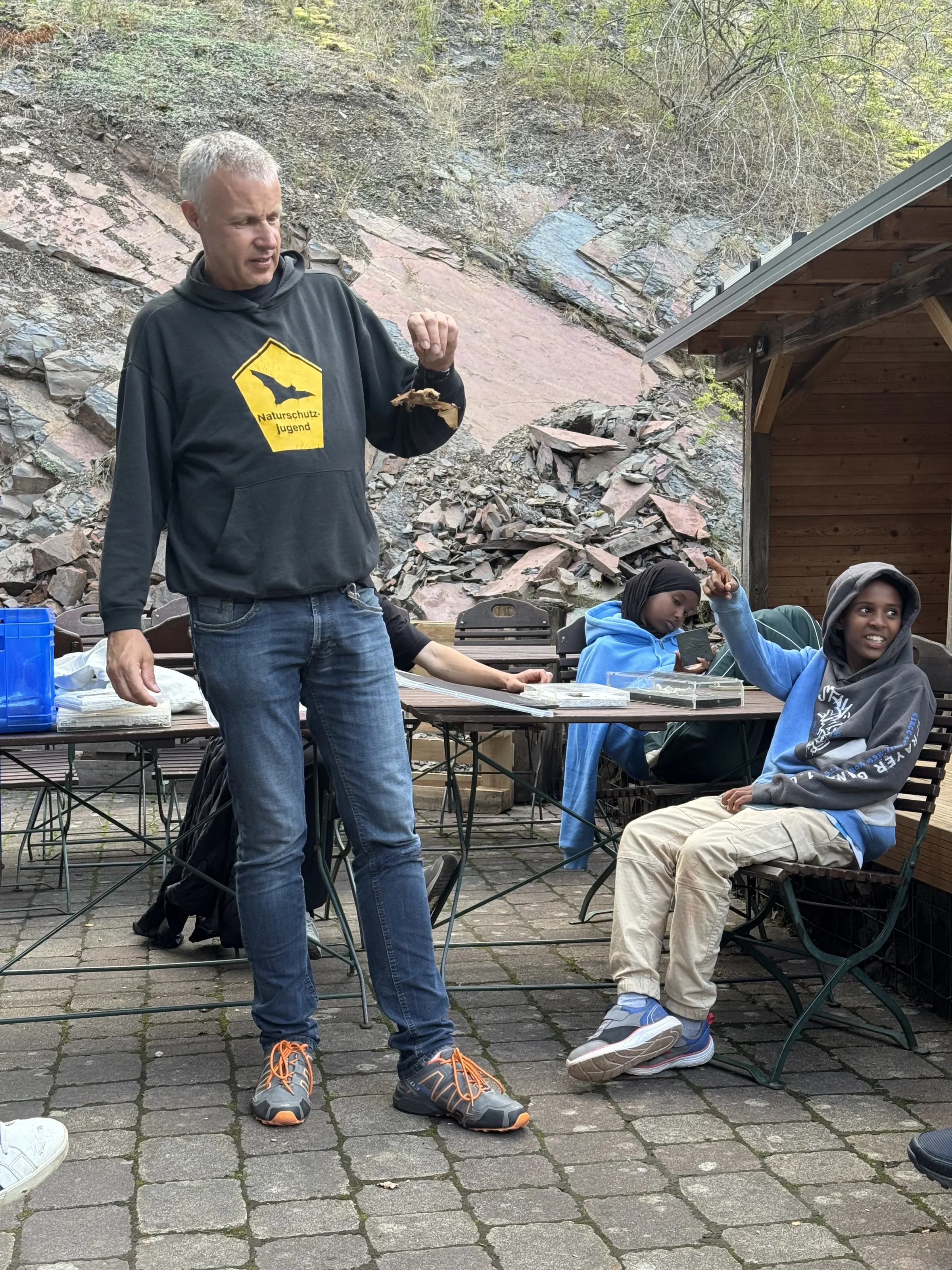 Gemeinsam erkundeten wir die stillen Orte im Wald, die der Seele gut taten und alle spürbar glücklicher machten. Darüber hinaus lernten wir die Lebenswelt der Fledermäuse kennen. Frank Seumer vom Verein NABU Waldeck-Frankenberg gab uns einen lebhaften Einblick in Anatomie und Artenvielfalt der heimischen Fledermaus und machten am Abend eine gemeinsame Fledermauswanderung, bei der wir mit Detektoren ausgestattet, die Signale der Fledermaus hören und sie somit orten konnten.