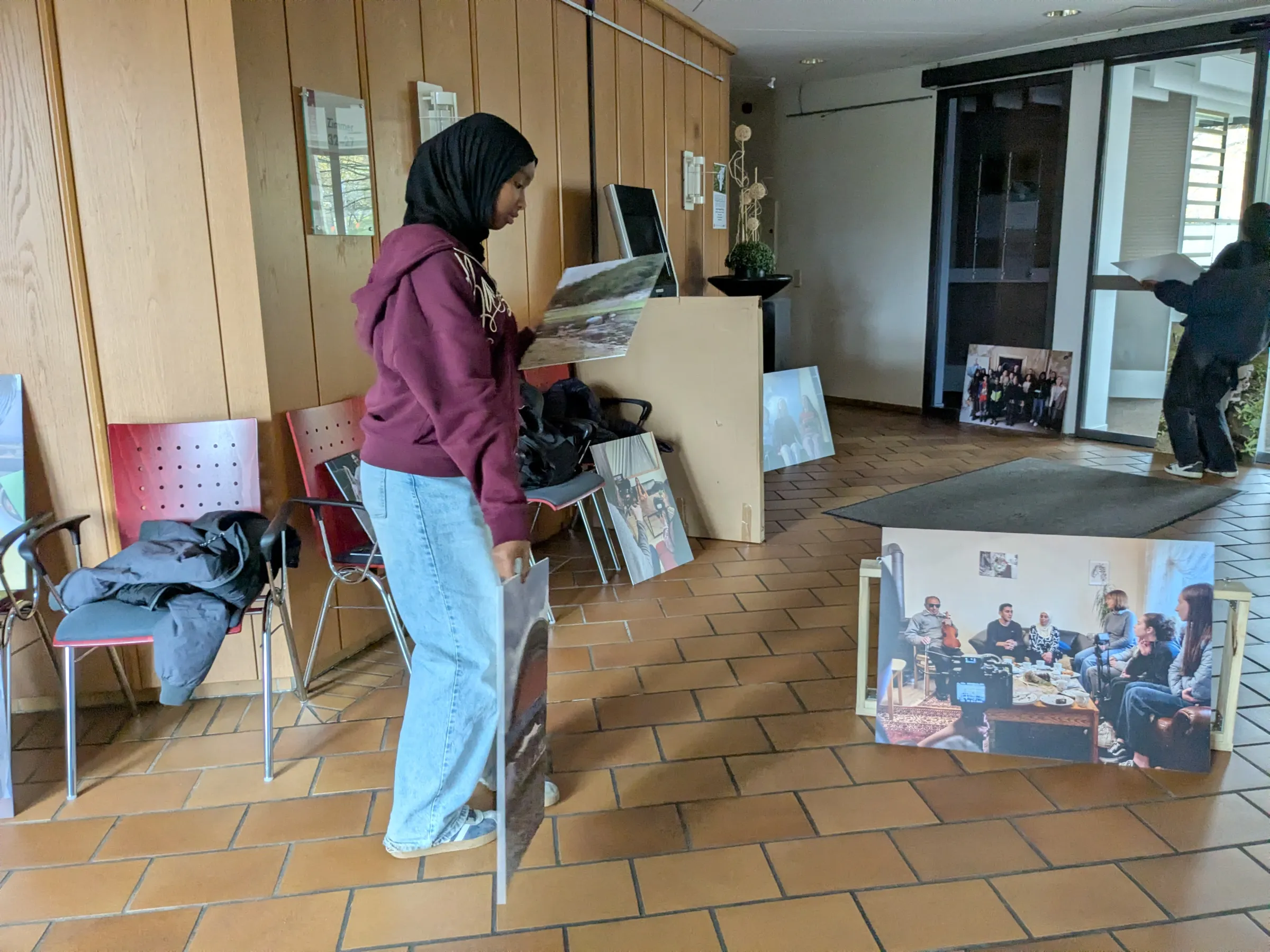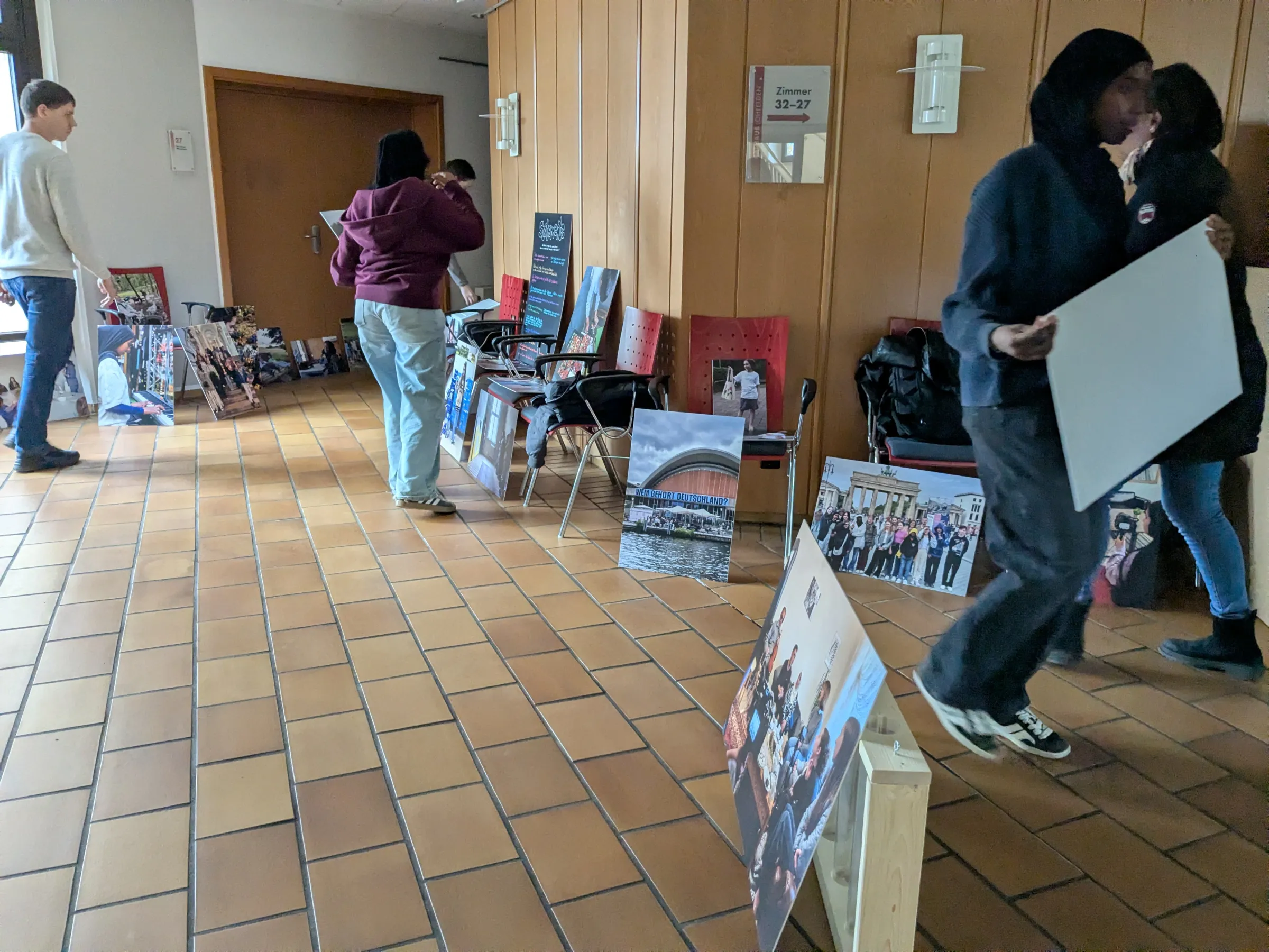 Dort wurde alles aufgebaut, die Bilder aufgehangen und am Ende waren alle beim leckeren Döner glücklich, es geschafft zu haben. Die Ausstellung konnte eröffnet werden.
