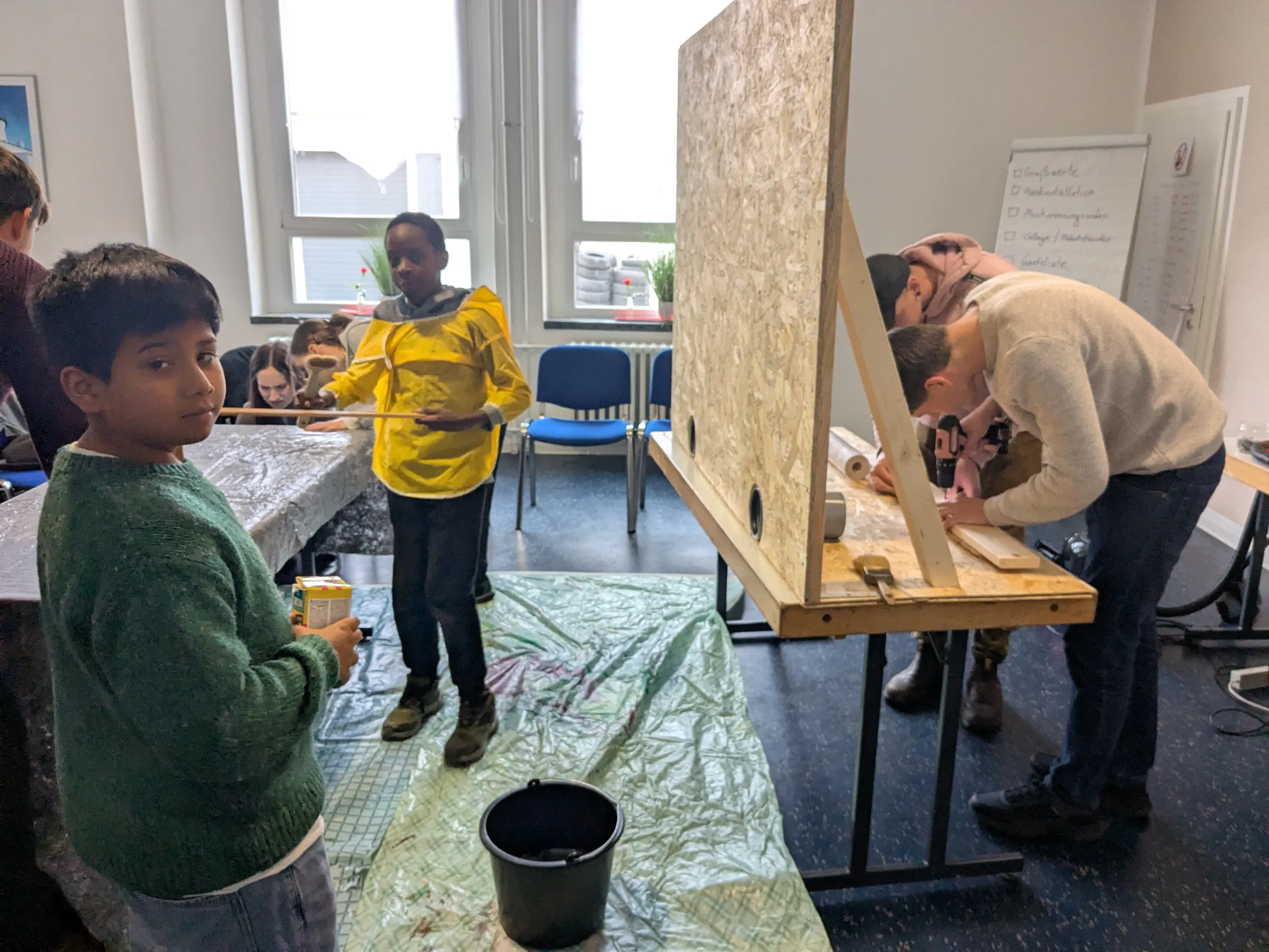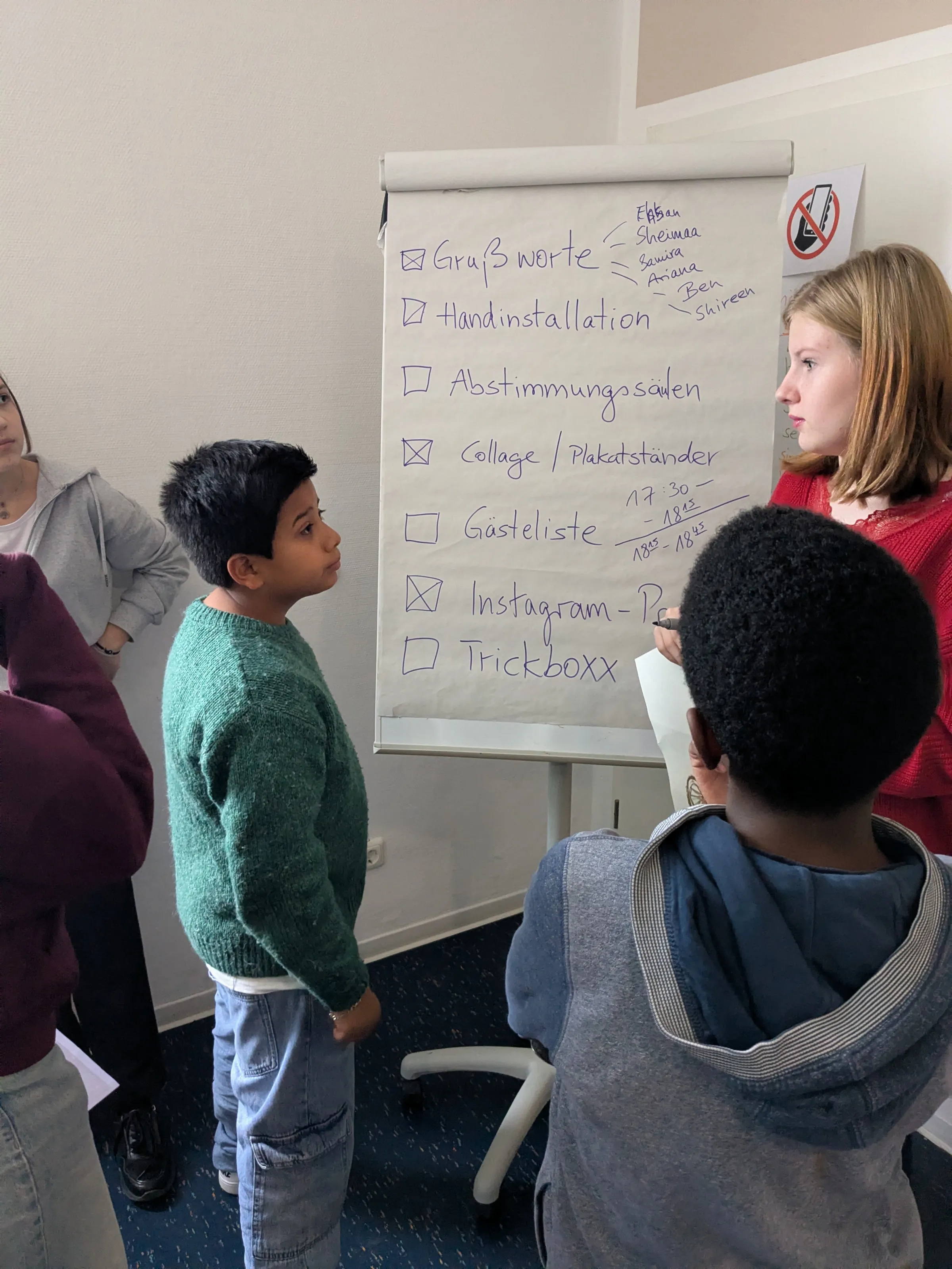 Außerdem überlegte die Gruppe, welche Medien sie im Projekt genutzt hatte – denn auch das sollte sich in der Ausstellung widerspiegeln. Schnell war klar: Eine Trickboxx muss unbedingt dabei sein, damit die Gäste vor Ort selbst einen kleinen Trickfilm erstellen können. Die Arbeit mit der Trickboxx war schließlich ein wichtiger Teil des ersten Workshops.
