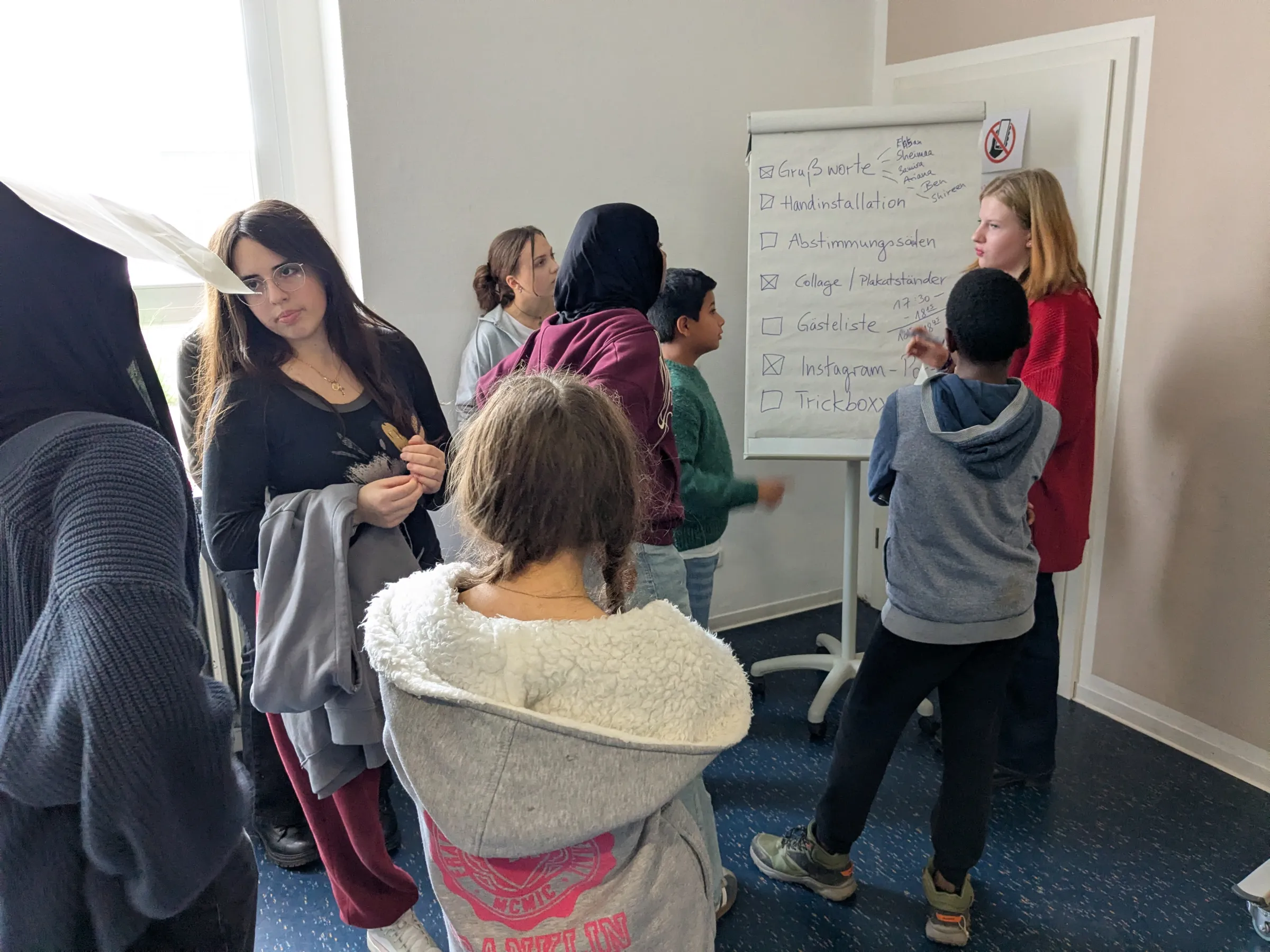 Innerhalb des Projektjahres hat die Gruppe viele Befragungsmethoden kennengelernt. Deswegen überlege man, welche Frage den Besuchenden gestellt werden kann. Die Frage soll nicht allzu intim, aber soll doch ehrlich sein – auch diese Herangehensweise an ein Interview haben die Teilnehmenden gelernt.
